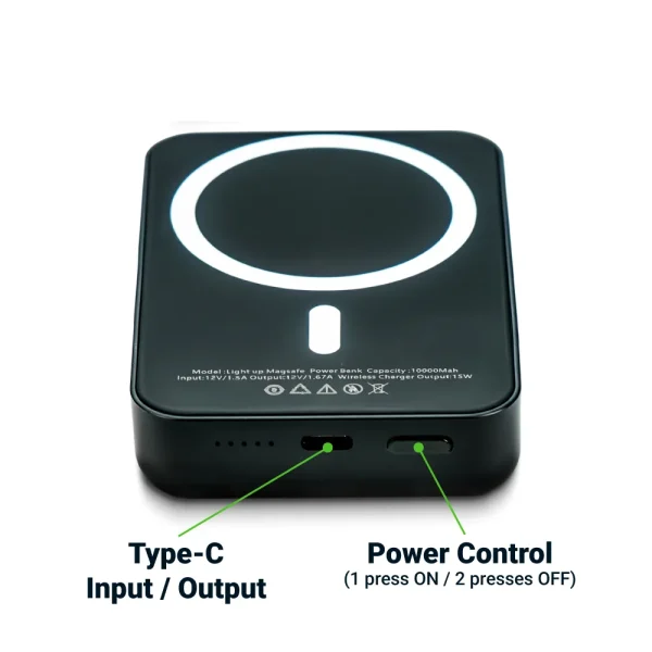 MagSafe Wireless Powerbank with Light-Up Logo, 15W Fast Charging, 10K mAh
